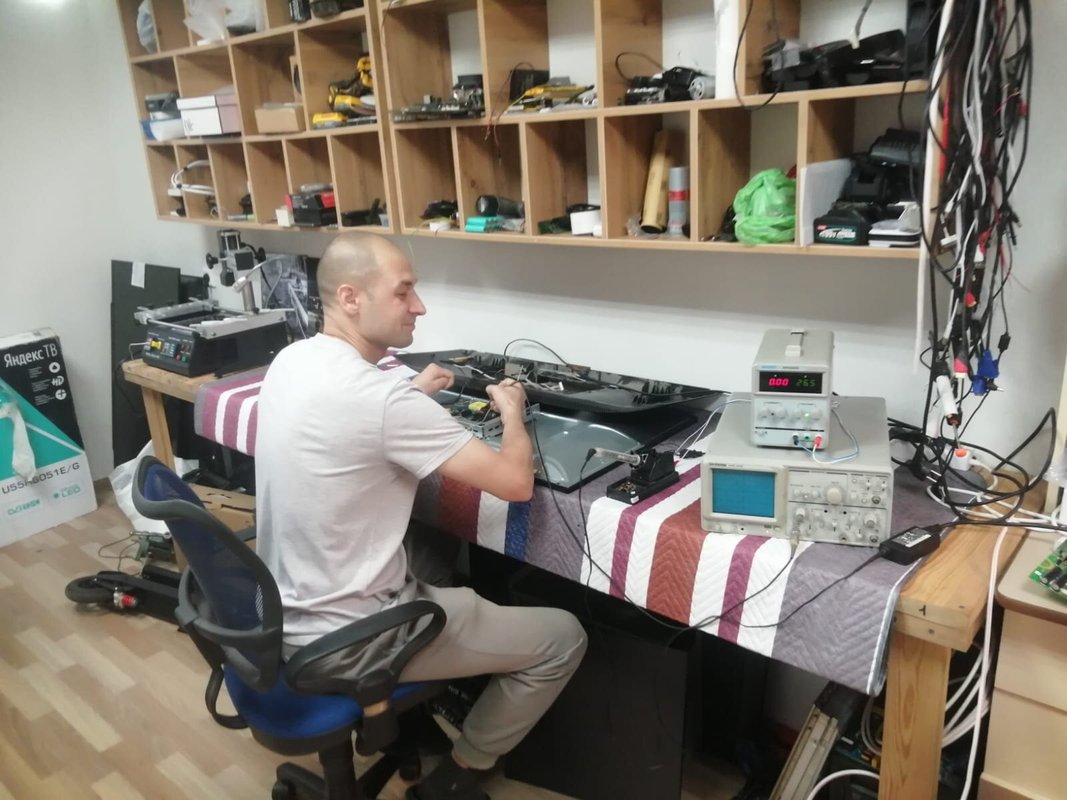 Приходил с телевизором, так как в нем перегорели светодиоды. Мастер все быстро сделал, примерно за 4 дня.